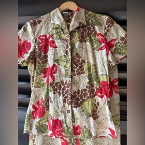 Transitions Women's Size 8 Tropical Matching Set Pants Button Down Top