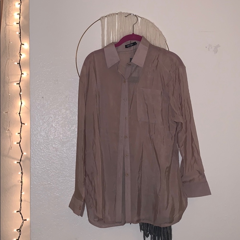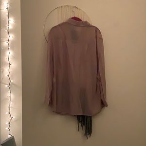 My favorite button up for a night out! It is slightly see through which makes it perfect to wear over a bralette or a cute tank!
