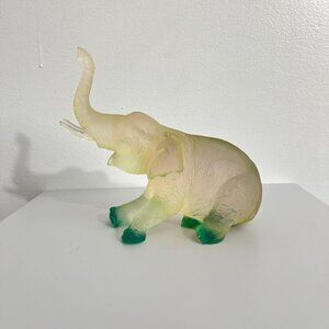 resin elephant figurine, yellow green decor, elephant collectible, desk decoration, small elephant statue, resin animal decor, shelf ornament, translucent figurine, gradient elephant, animal figurine, resin decor piece, decorative elephant statue, unique animal figurine, lightweight decor item, DAUM