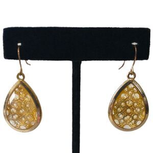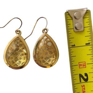 Translucent Filigree Earrings Gold Acrylic Overlay Dangle Teardrop Fairy Boho Condition is pre-owned and vintage. Has some wear to the ear wires. No chips, cracks or loose stones. Faceted stone over the filigree with a gold colored acrylic. Please see photos for detailed condition.