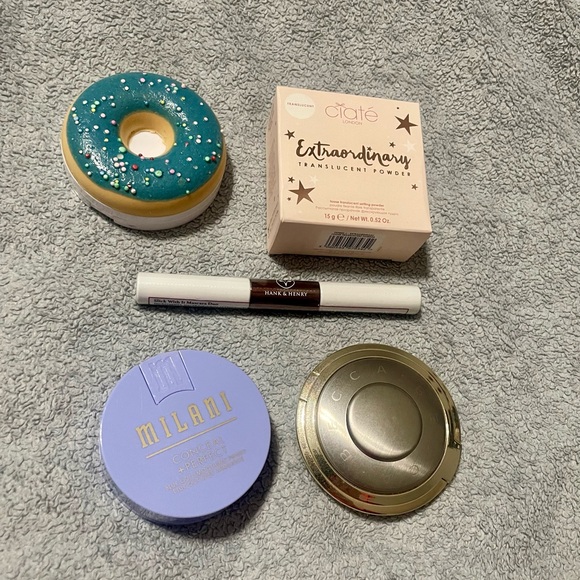 Achieve a flawless finish with 's Extraordinary Translucent Powder. This lightweight powder sets makeup for a long-lasting, shine-free look. Perfect for all skin tones. Revolution Blueberry Crush, Milani conceal and perfect primer, Becca Champagne Splits, Ciate translucent powder and Hank and Henry mascara duo