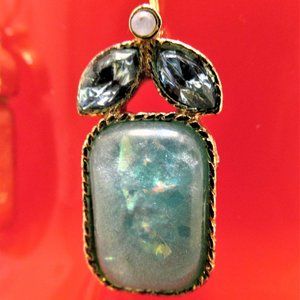 Blue translucent turquoise stones set in gold tone and stamped NR on back. In like new condition with no missing or damaged stones and 1inch long.