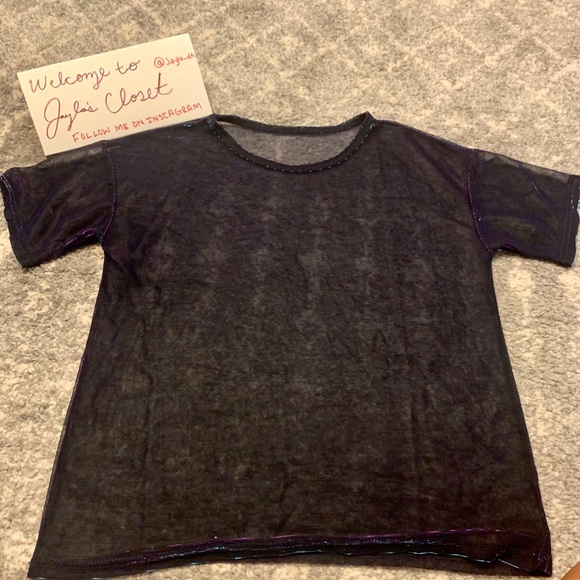 For concerts, the bars or to make a “out of this world outfit” this shimmering top is a must! See through and beautiful with puure,pink, blues showing through the black clear material.