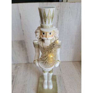 Transpac nutcracker light up tree white gold Xmas home decor figure