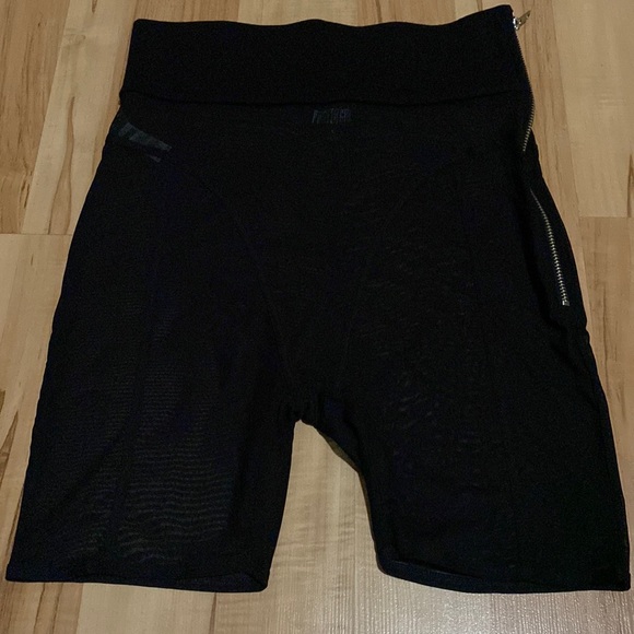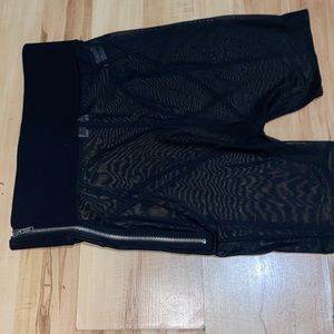 Sheer, stretchy shorts w/ thick waist band and side zipper.