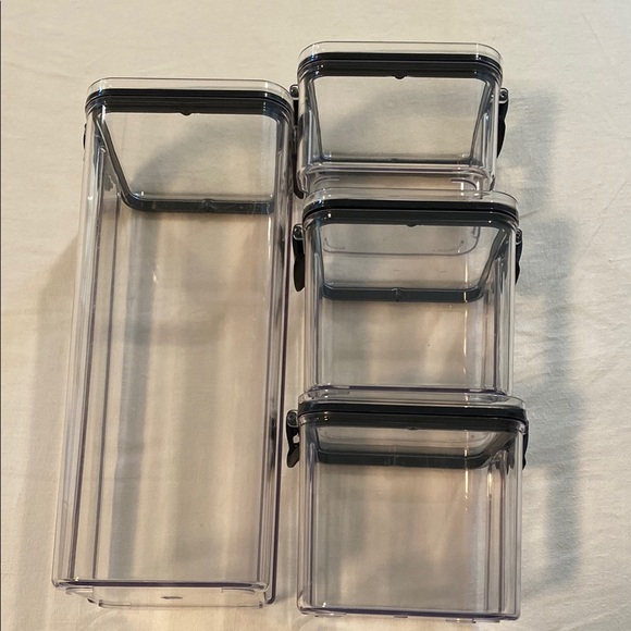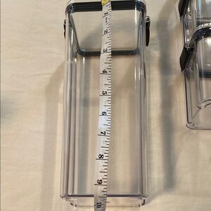 Keep your kitchen organized with this transparent food storage container set. Perfect for storing a variety of foods while keeping them fresh. The sleek black accents add a modern touch to your kitchen decor.