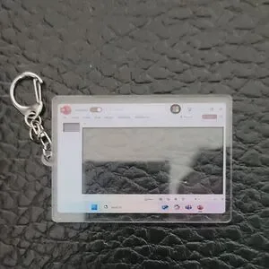 Unique transparent keychain featuring a computer interface design. Perfect for tech enthusiasts.