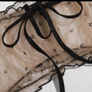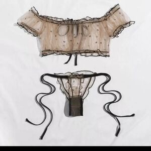 Crop off shoulders bralette sheer nude and black. Side tie bottom. Wear for fun not support :)