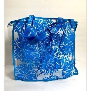 Transparent PVC Tote Shoulder Bag Shopping Handbag Travel Beach Bag Blue