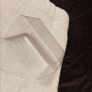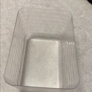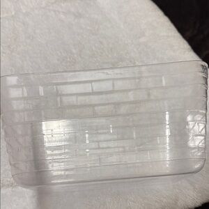 Clear rectangular organizer. Perfect for storing various items. longer burger basket with liner used but still in good condition.
