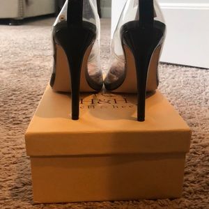 Transparent black base heel. Can be a formal heel. Shoes has never been worn.