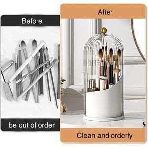 Transparent white 360°Rotating Makeup Brush Organizer With Lid for Easy Access