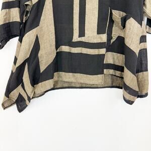 Transparente Linen Asymmetrical Lagenlook 3/4 Sleeve Top Black Tan Women's Large