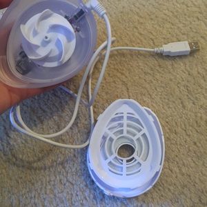 Cool small aromatherapy dispenser. You insert aroma on the pad, close the machine, and it blows air through The room or car or wherever. Cool! Got for bday, new