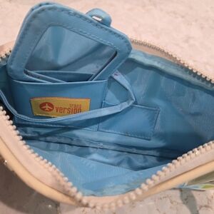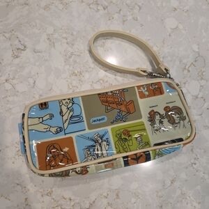 Fun mid century design wristlet with fun flight attendant comic strip design.