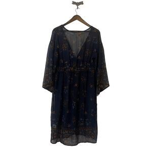 Trantrums Sheer Navy Blue and Floral Fabric Duster Women's Size Large