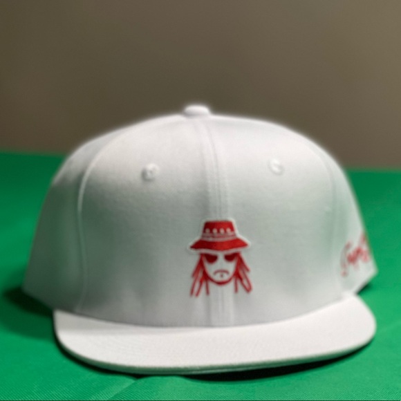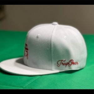 TrapGear SnapBack White Red Face logo on the front & red TrapGear on the side