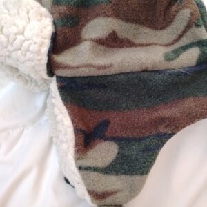 Warm and stylish kids hat. Camouflage pattern with soft white lining. Ideal for winter wear.