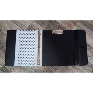 Geometric pattern. Flap over closure. Inner pocket. Three ring binder. Classic. Supplies. Fun. 12"H x 11"W x 1.5"D.