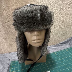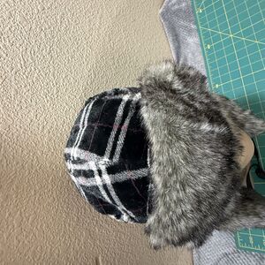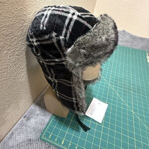 Trapper hat faux fur plaid one size