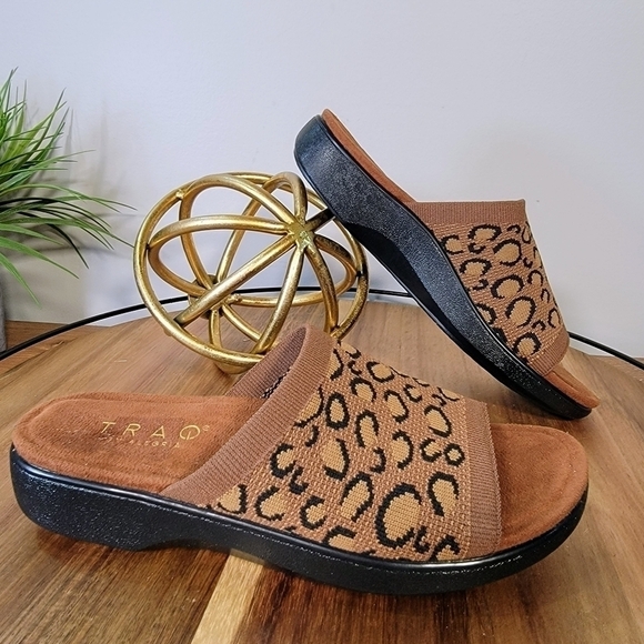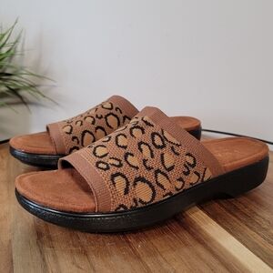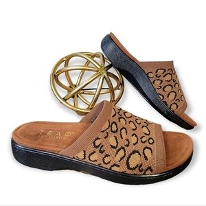 Traq by Alegria Leopard Knit Slide Sandals Comfy Size 36