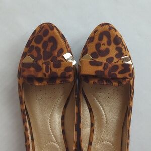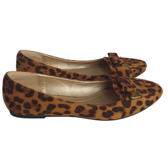 Trary Pointed Toe with Bow Slip On Ballet Flats Leopard Print 8 Brown