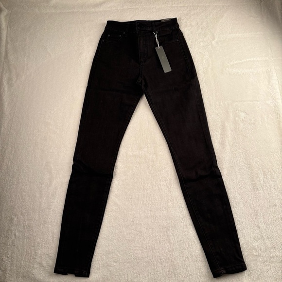 Trash High Rise Skinny Jeans Black Premium Denim Collection Split Hem