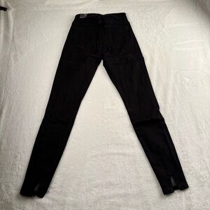 Keywords: high rise jeans, skinny jeans, black jeans, denim jeans, split hem jeans, trash jeans, premium denim, ankle slit jeans, slim fit jeans, dark wash jeans, casual jeans, stylish jeans