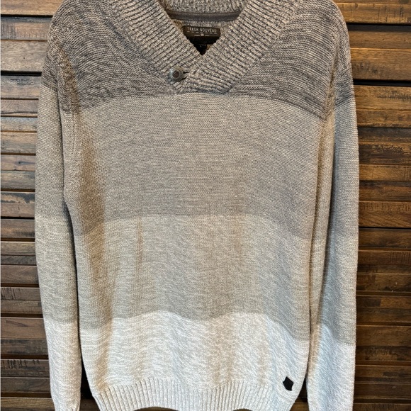 Trash Nouveau Knit Pullover Sweater Shawl Neck Mens LRG Striped Multi Color Grey