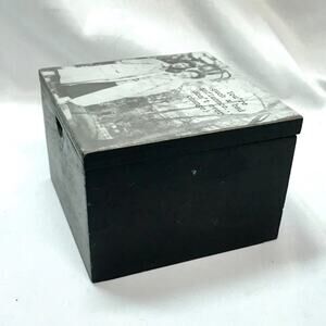 Add a quirky, vintage touch to your décor with a cute wooden box featuring a black-and-white photograph and the impish quote, “You're such a bad influence…don't ever change!”