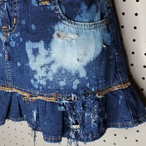 Trashed Glammed Up Grunge Lace Sequins Sugar Skull Denim Skirt, Sz 5 Custom UP