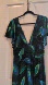 This Trashy Diva dress is a stunning cocktail piece, featuring a vibrant emerald green and deep navy blue tropical print. The fit and flare silhouette is enhanced by a dramatic plunge neckline and flutter sleeves, creating an elegant and flattering look. Perfect for making a bold statement, this maxi dress combines style and sophistication effortlessly.