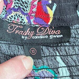 Trashy Diva Halter Faux Wrap Dress Black Multicolor 10 Asian Pin Up Rockabilly
