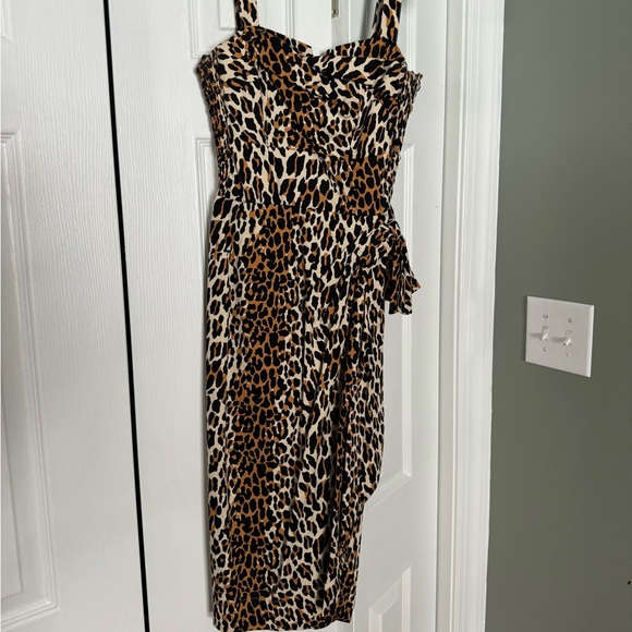 Size 6 Trashy Diva Trixie sarong dress in their 50s cotton leopard print. There are some threads coming apart at the base of the zipper. Otherwise it’s in great condition.