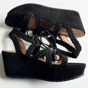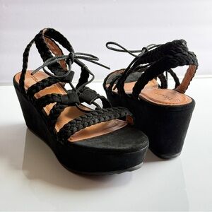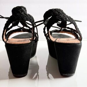 Trask Black Suede Platform Braided Wedge Lace-Up Sandals Size 11