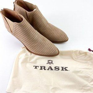 Trask Bootie womens size 11 Tisha Perforated Taupe Oiled Suede Ankle Shoe