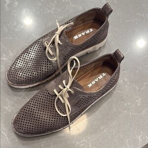 Experience the perfect blend of style and comfort with Trask's brown sneakers. These shoes feature a breathable perforated leather upper and a sleek lace-up design, making them ideal for casual outings. The flat rubber sole ensures a comfortable stride all day long.