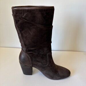 Trask Brown Whipstitch Suede Leather Womans 9.5 Mid Calf Pull-On Boots