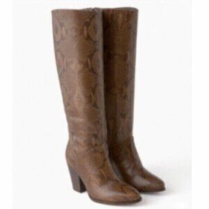 Inside zip | Almond toe | Snake-print leather upper | Leather lining | Leather-wrapped memory-foam footbed | 15" shaft