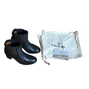 Trask Leather Grommet Eyelets Block heel Chelsea Ankle Tina Bootie Black Sz 7.5