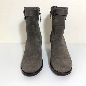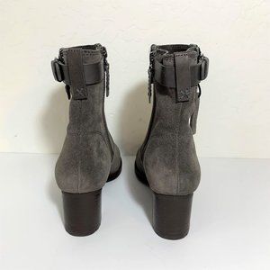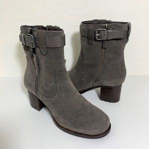 NEW Trask Madison Boots Gray Waterproof Suede Buckle Block Heel Booties Size 6.5