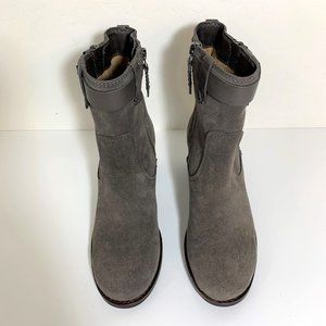 Trask Madison Boots Harness Buckle Suede Lug Sole Heel Booties Gray Size 6.5 NEW
