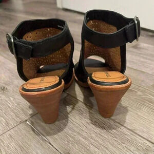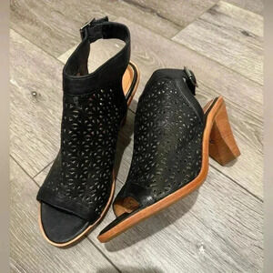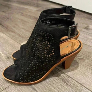 A stacked heel perfectly lifts an essential slingback sandal crafted from breezy perforated leather.