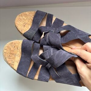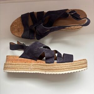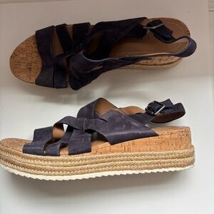 Trask Sandals Women's Blue Suede Leather Platform Espadrilles, Size US11M