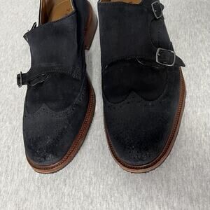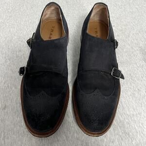 Trask Shoes Mens Size 10 Navy Suede Double Monk Wingtip Brogue Dress 30-01457