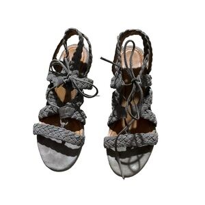 Trask Suede Wedge Platform Sandals Grey Toupe