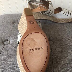 Trask 'Willow' Leather Platform Wedge Sandal. Size 11M. Nearly new condition with minor wear to soles.