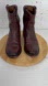 Trask size 6-6.5 Brown Leather Boots in good preowned condition. Emblem missing of side of boot tiny hole and size not marked either 6 or 6.5 besides that normal wear to soles and somes arks and creasing on leather.