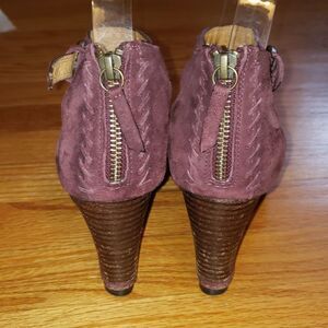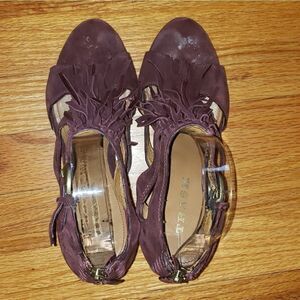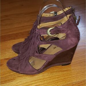 Trask Cabernet suede tassel wedges Womans Size 8m 3.5 inch heel These are used and will not be in new condition. Please keep that in mind when looking.  Thanks. Gently used. No rips or tears. No box. We always ship carefully packaged and box ship asap. Contact with any questions. Pair in photos are what you are purchasing. Make sure to follow us as we list daily and offer discount pricing on Bundles of 2 or more.