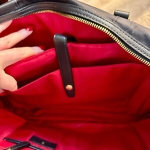 Travanti Laptop Bag Black Gold Hardware Red Interior Large Work Tote